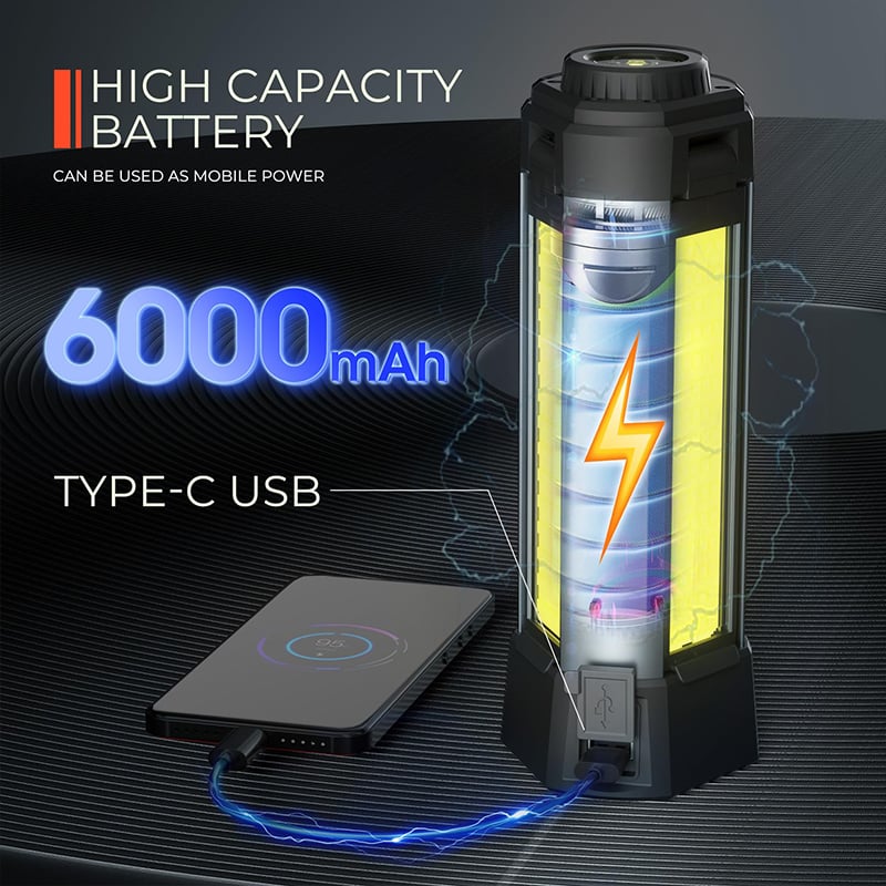 - 9000mAh High Capacity Battery: Get rid of the shackles of the cord! The LED work light is powered by a 9000mAh high capacity battery which supports longer working hours! It amazingly keep working 12 hours on low brightness, which is sufficient for multiple outdoor activities! Compared to the traditional corded light, our cordless work light provides you indoor flexibility and outdoor portability, satisfy your lighting needs for various working places.