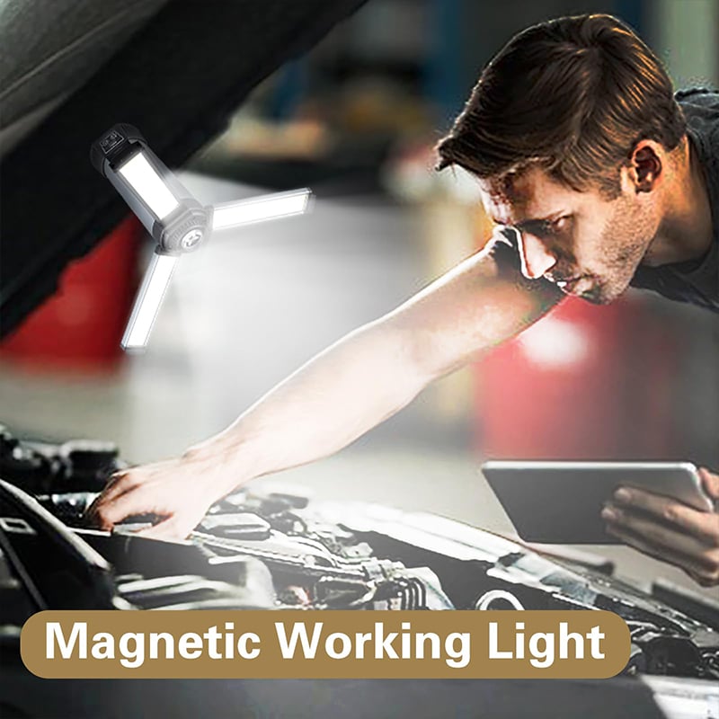 - Three Rotatable Lamp Panels: The LED camping light features three rotatable lamp panels with adjustability of vertically 180°rotation and horizontally 270° rotation! Precisely adjust the lighting angle in multiple directions to light up any place where lighting is needed or illuminate 3 different directions at the same time! Say goodbye to dark corners! Whether you're lighting the scene of an accident, working in the garage, or sitting at a campsite, our tripod work light will accommodate your needs.