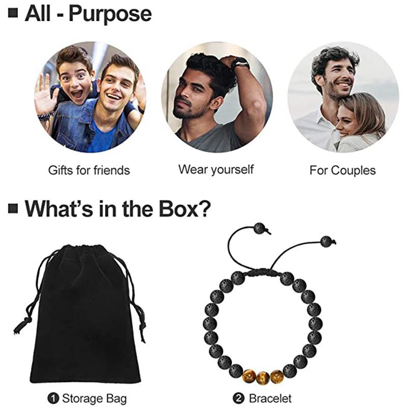 MATERIAL: Natural black lava rock stone and tiger eye, come with a easy to store flannelette gift bag. Natural stone bead possess low density and light weight. Its cool feeling in hands can make the anxiety calm down.