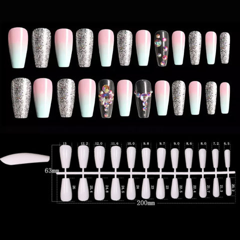 [Shiny Rhinestone] Unlike ordinary nail stickers, our nail stickers are based on gradient colors and decorated with shiny rhinestones. You can wear it on occasions such as weddings, anniversaries and parties, always the most eye-catching.