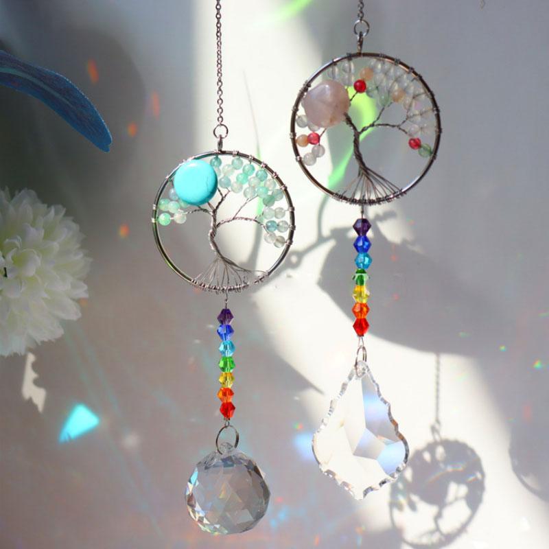 Crystal Wind Chime Pendant Colorful Life Tree Beads Hanging Drop for Outdoor Indoor Garden Window Wedding Curtain Chandelier DIY Decorations