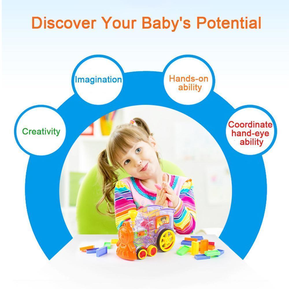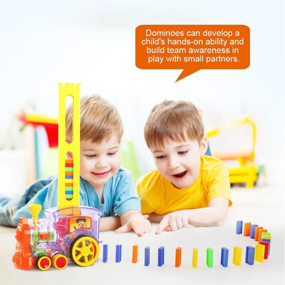 • Fill the cartridge and start the train to lay your domino trail. All domino rally sets work together to help make the coolest domino creations you can imagine. An ideal toy or gift for training the children's patience and counting ability. Just rack them up and knock They down.