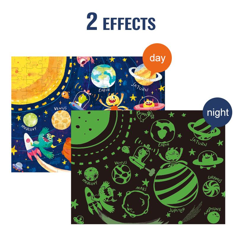 - A puzzle with two visual effects: you can enjoy different fun during the day and night (the luminous effect only needs to put the puzzle in the light for 1 minute, and then take it to a dark place to enjoy the luminous fantasy effect )
