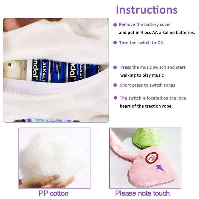 Package includes: 1 xĀ WALKING & SINGING UNICORN PLUSH TOY