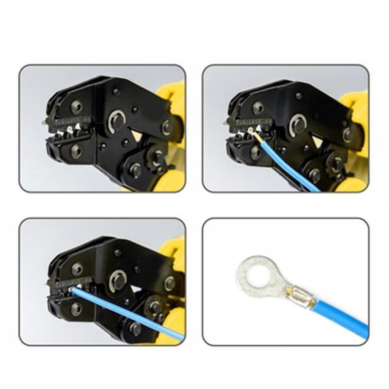 - Professional wire crimper tool with self adjustable ratchet mechanism for easy operation.