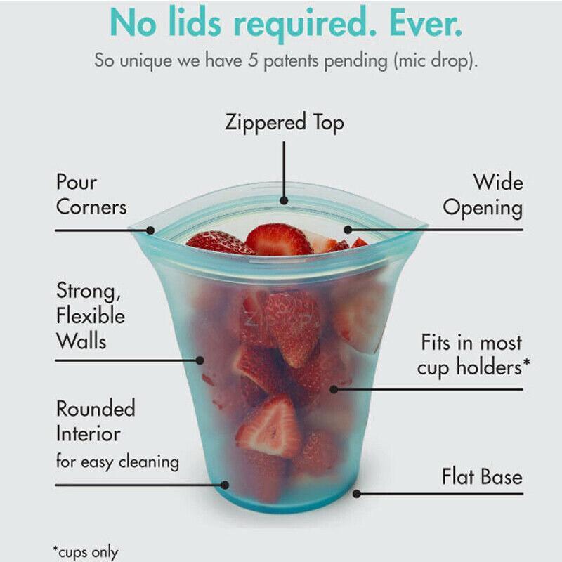 - CUP: The cup-type bag is available in 3 sizes and is designed for versatility. Soups and sauces can all go from freezer to microwave to table. Kid’s snacks, candy, nuts and almost anything can go in the cup. But don’t stop there, use it for travel, on the go or get creative!
