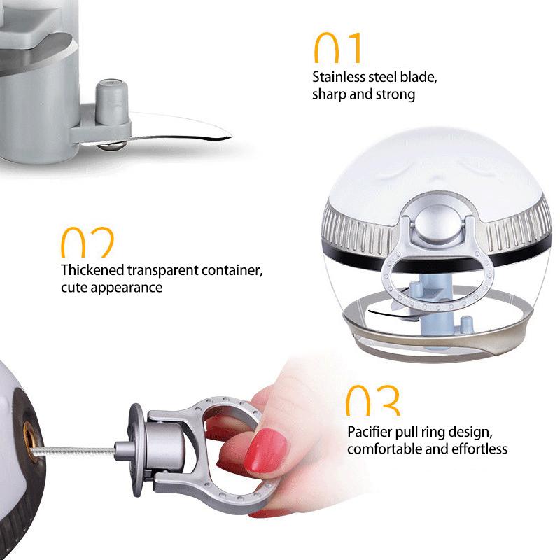 Pull cord is easy and ideal for chopping food fast, with anti-skid base and transparent body.