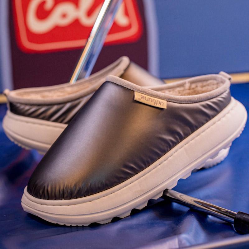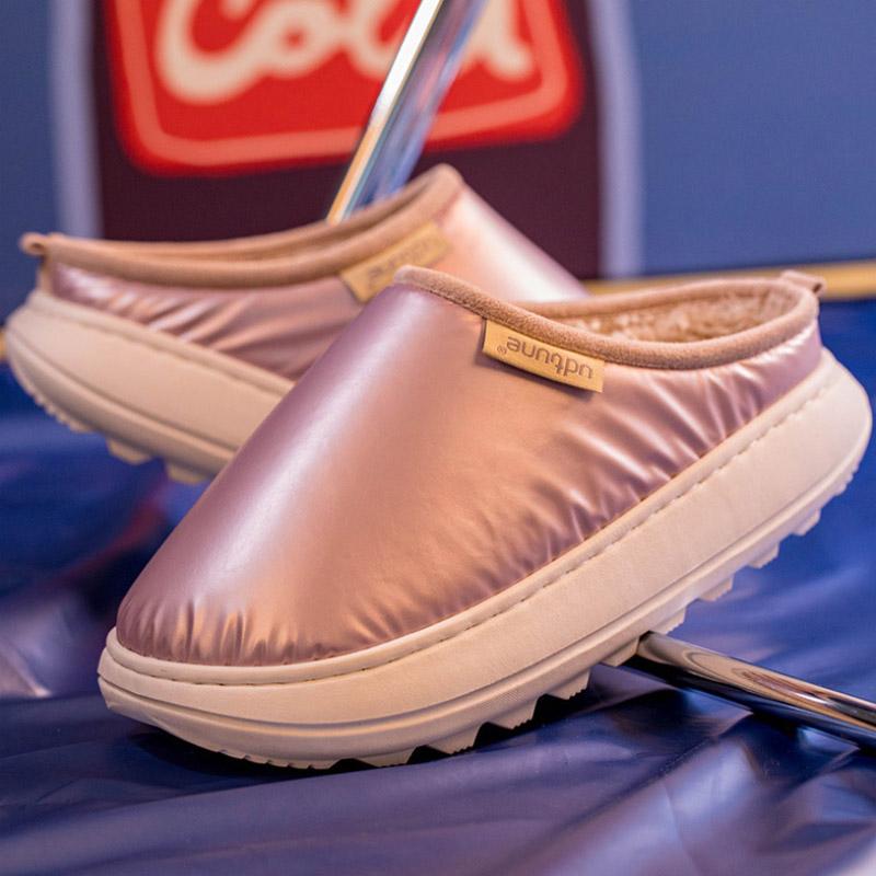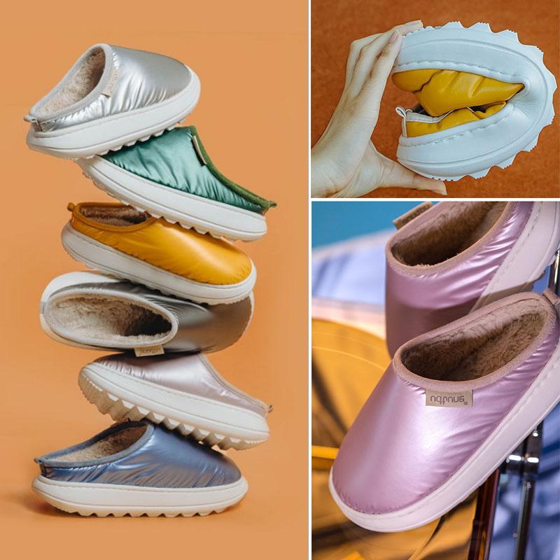 EVA ANTI-SLIP SOLEĀ - Made of EVA material, the wave-shaped design bringsĀ excellent anti-slNew Style Down Fabric Thick-Soled Warm Slippersip performance, allowing you to wear it and walk freely on the street in winter.