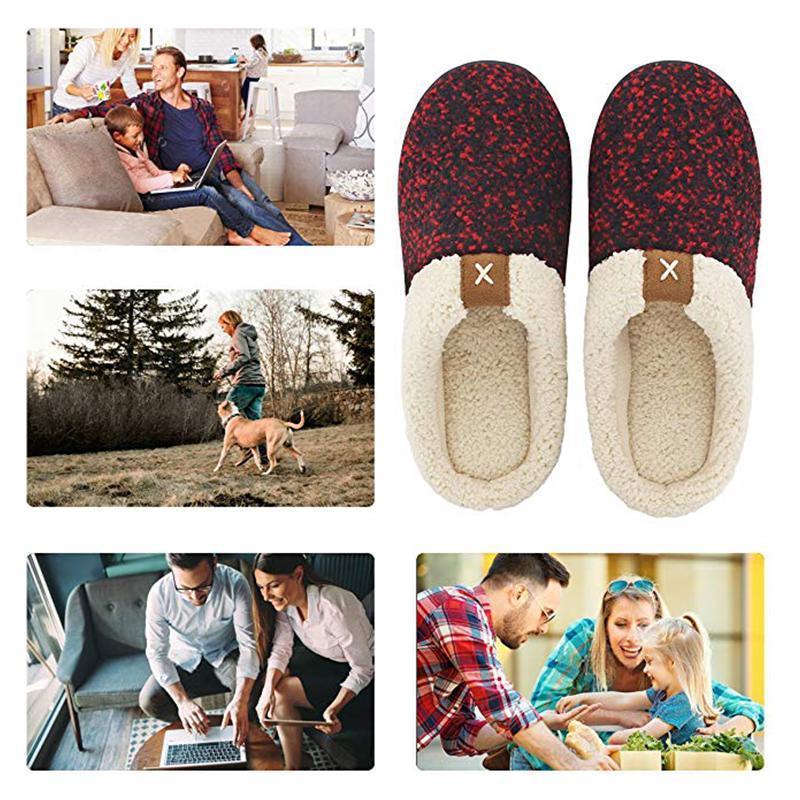 It is easy slip-on design slippers, along with high-quality and comfort man-made fluffy plush fleece lining that encompasses your feet very well and offers soothing comfort.