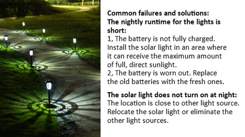 - 【Weatherproof & Warranty】Solar landscape lights are waterproof IP44, which can withstand sunny, rainy, and small snowy days. In any case the LED pathway lights stop working, just contact us, we will help you solve the problem as soon as possible.