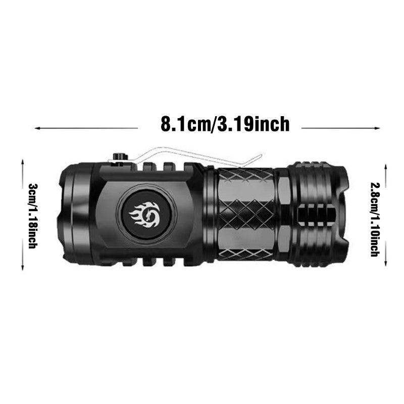 Experience unparalleled brightness and versatility with the Three-Eyed Monster Mini Flash Super Power Flashlight! This compact yet powerful flashlight is designed to give you the illumination you need whenever you need it. This flashlight is your reliable companion, whether you're camping in the wilderness, dealing with a power outage, or just exploring the outdoors.