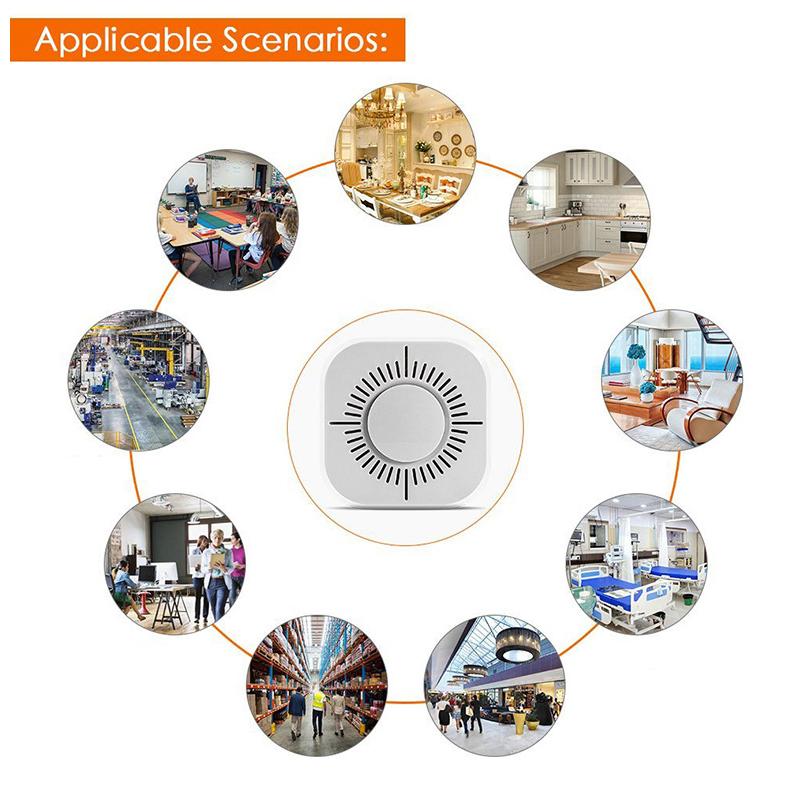 Support three alarms: independent sound and light flash alarm, 433 wireless transmission network alarm.