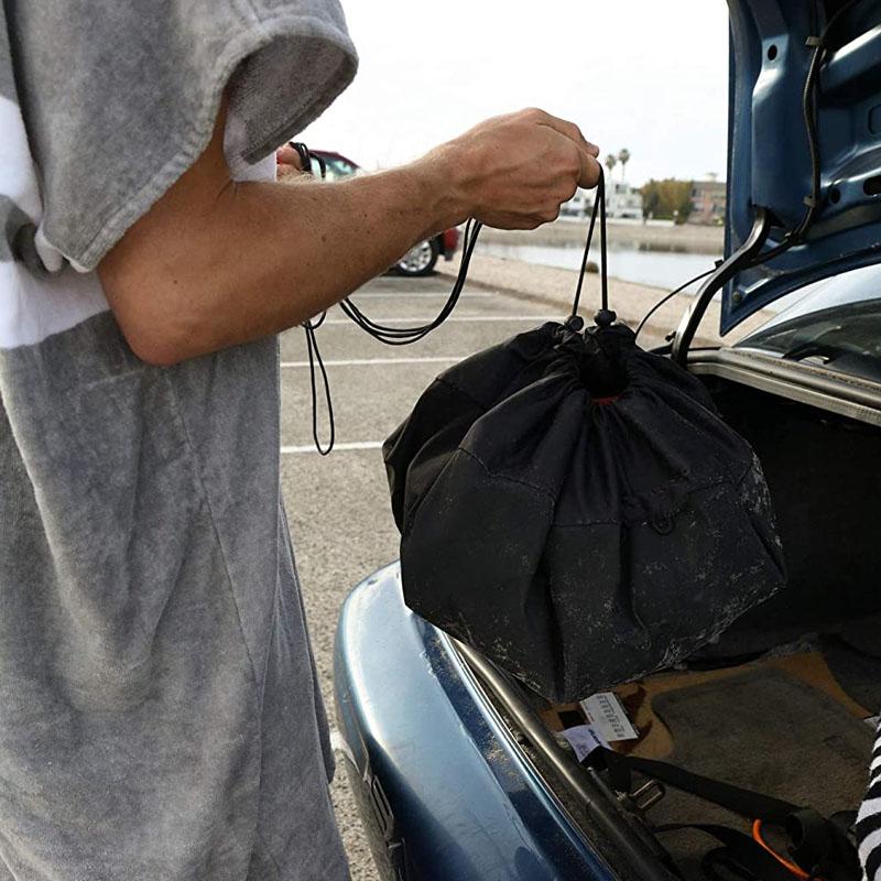 After you change out of your wet wetsuit, tighten the drawstring on the mat, and it turns into a dry bag, and then put the wet clothes into the drawstring bag. Great wet dry carry bag for surfing swimming diving.