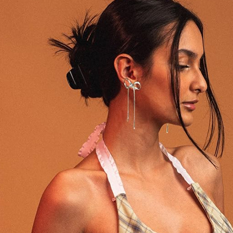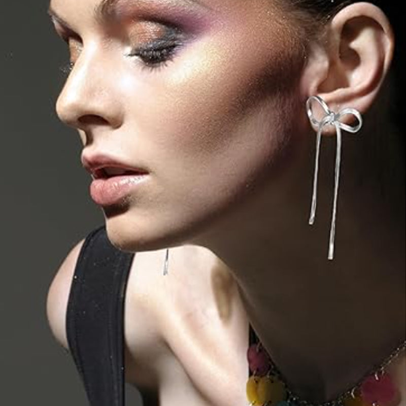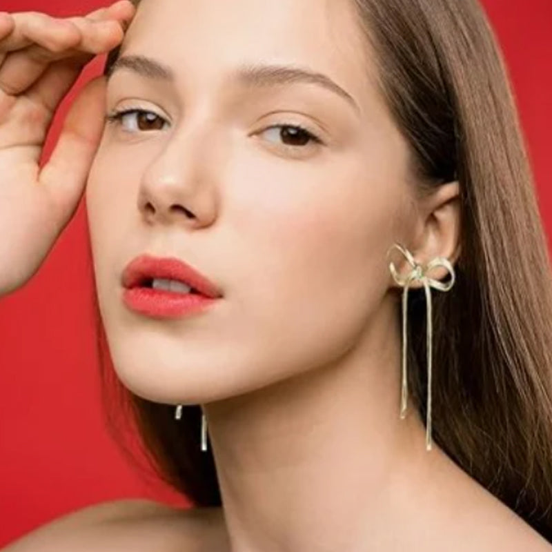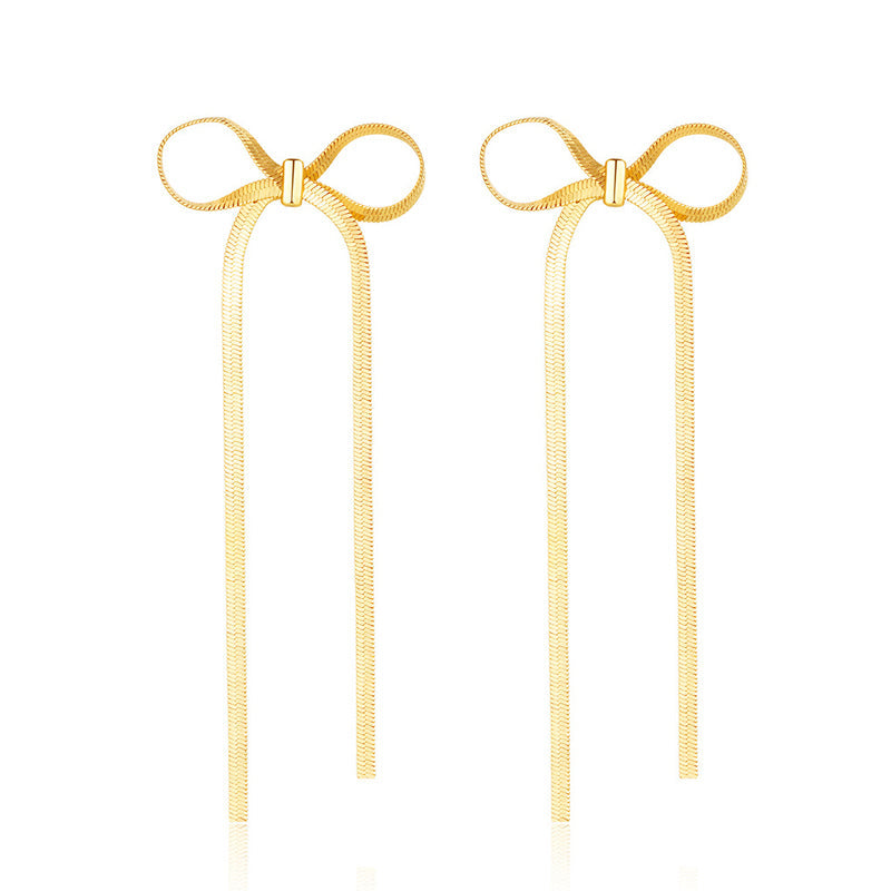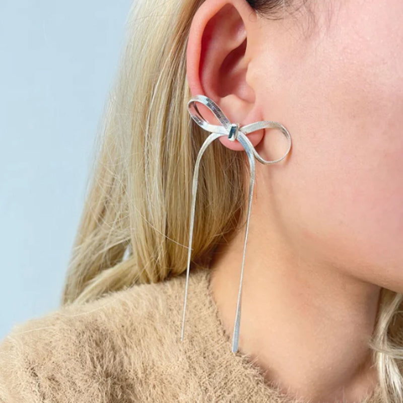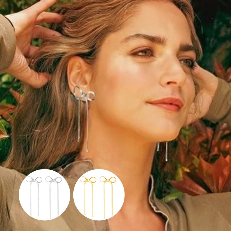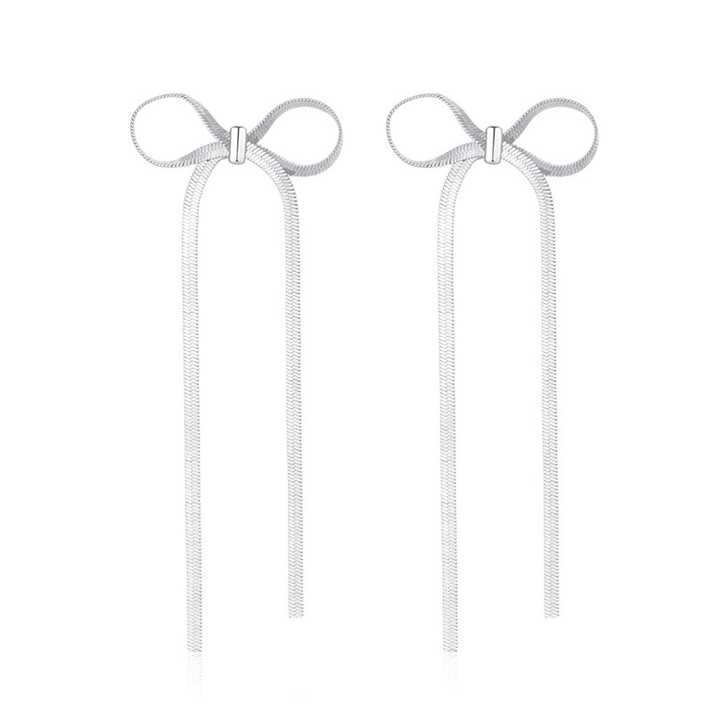 Unique Design: These statement earrings feature ribbon bow shaped design with a silver-finish wire makes you shine in the crowd and show your charm. These gold earrings are comfortable to wear all day long, thanks to their lightweight design, and they're easy to dress up or down.