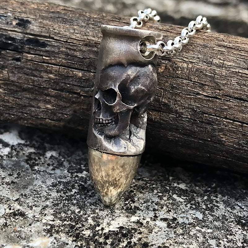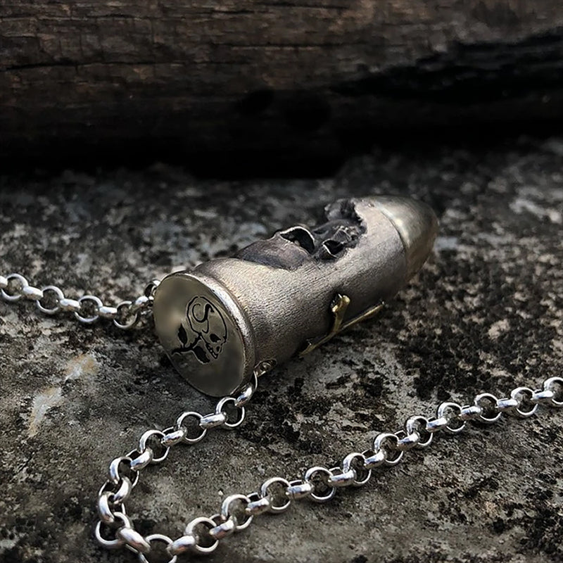 ā Ā Handcrafted with 925 silver and masterfully aged withĀ antique sheen, this bullet skull necklace is your effortless statement piece toĀ match your edgy taste.