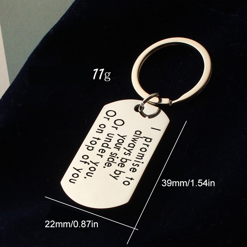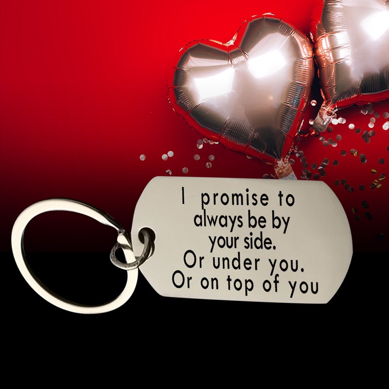 Stainless Steel Keychain: I Promise to Always Be By Your Side Or Under You Or On Top Of You key ring is made of top stainless steel, smooth surface, durable, no fade, no rust.
