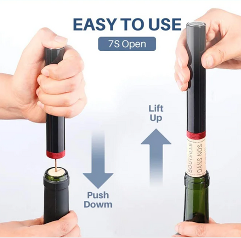 【Easy】 The new air pump wine opener is an easy way to open a bottle of wine without pulling and twisting. Just insert the needle, pump a few times and the cork will come out.