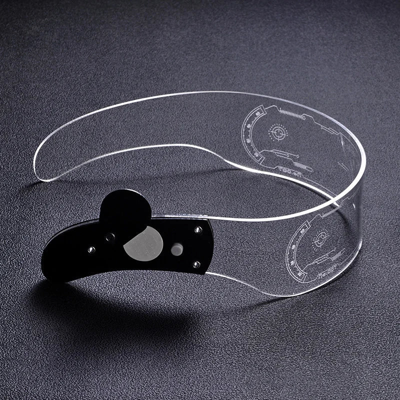 Silent operation, no wires! Glasses lights will remain bright for up to several hours per set of batteries. Our laser etched design is inspired by futuristic clothing / robocop / cyberpunk visor / cyborg / monoblock cyclops / pixel robot / EDM scene. Perfect for men or women. These glasses do not have a flashing mode. Better than Bluetooth Chemion, GloFX, Pinfox or shutter shades!
