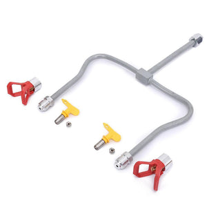 This airless spray tip extension has two tips spaced 6 inches apart that deliver a spray fan that’s twice the width of a spray gun or single-tip extension.