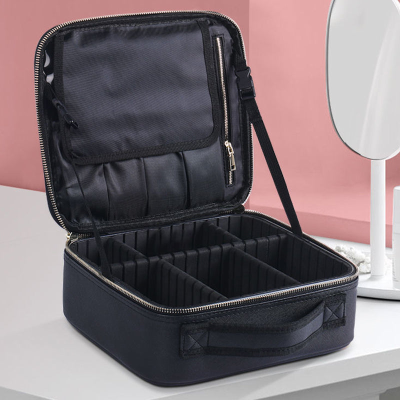 ★DIY SMART DESIGN: Our makeup travel case comes with 8 adjustable EVA dividers, you can move the partitions as needed to fit different cosmetics and keep them perfectly separated and organized.
