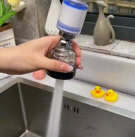 - Have an easy rinsing while conserving more water using this Pressurized Splash-proof Filter Faucet. This faucet is designed with a convenient 360° swivel spray that can be rotated smoothly in any direction you desire. It delivers a consistent soft bubble stream which drastically cuts down water consumption without sacrificing the pressure flow.