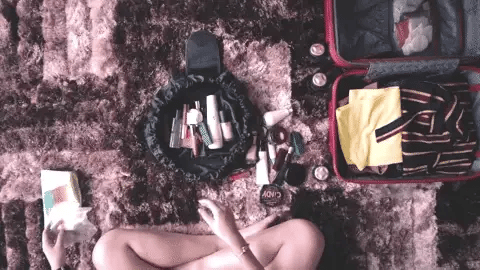 ✔ PACK UP INSTANTLY – Packing up all your products is no longer a chore. Just place everything on the open makeup bag, and pull the strings to close. It really is that simple.
