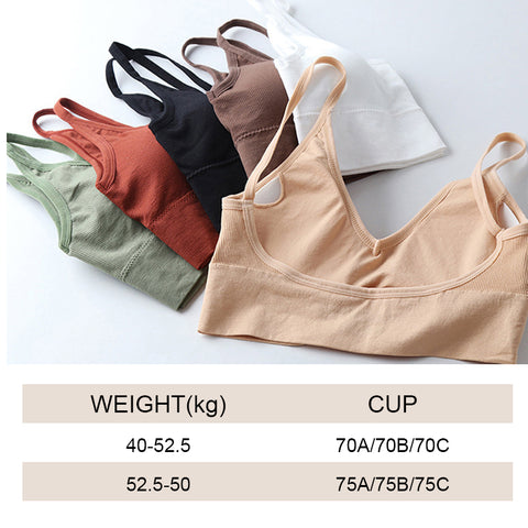 Removable soft cup pads with a material like cotton for improving coverage and keeping shape; Bra without underwire and seamless design to minimize chafing, soft and comfortable to wear.